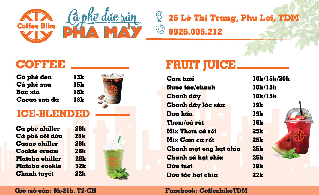 Located in the beautiful, breezy area of Phú Hòa, Thủ Dầu Một, Coffee Bike is a cozy café that has quickly become a local favorite. Known for its friendly atmosphere, the café offers a diverse menu that delights coffee lovers and casual diners alike.